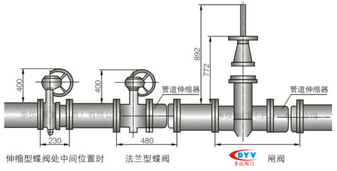 7、伸縮法蘭蝶閥出廠時結構長度為最小長度,安裝時,拉至安裝長度 (即設計長度);