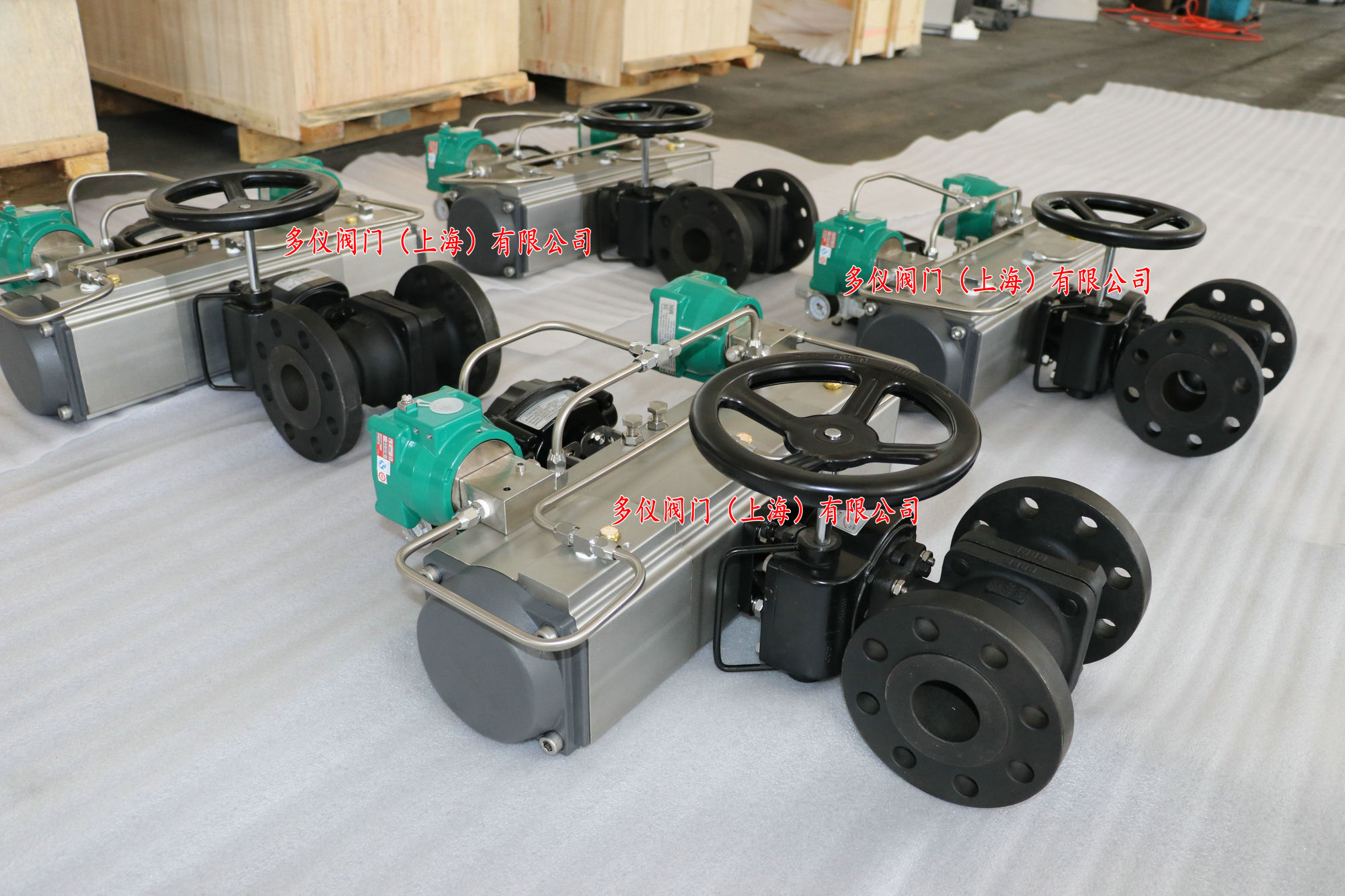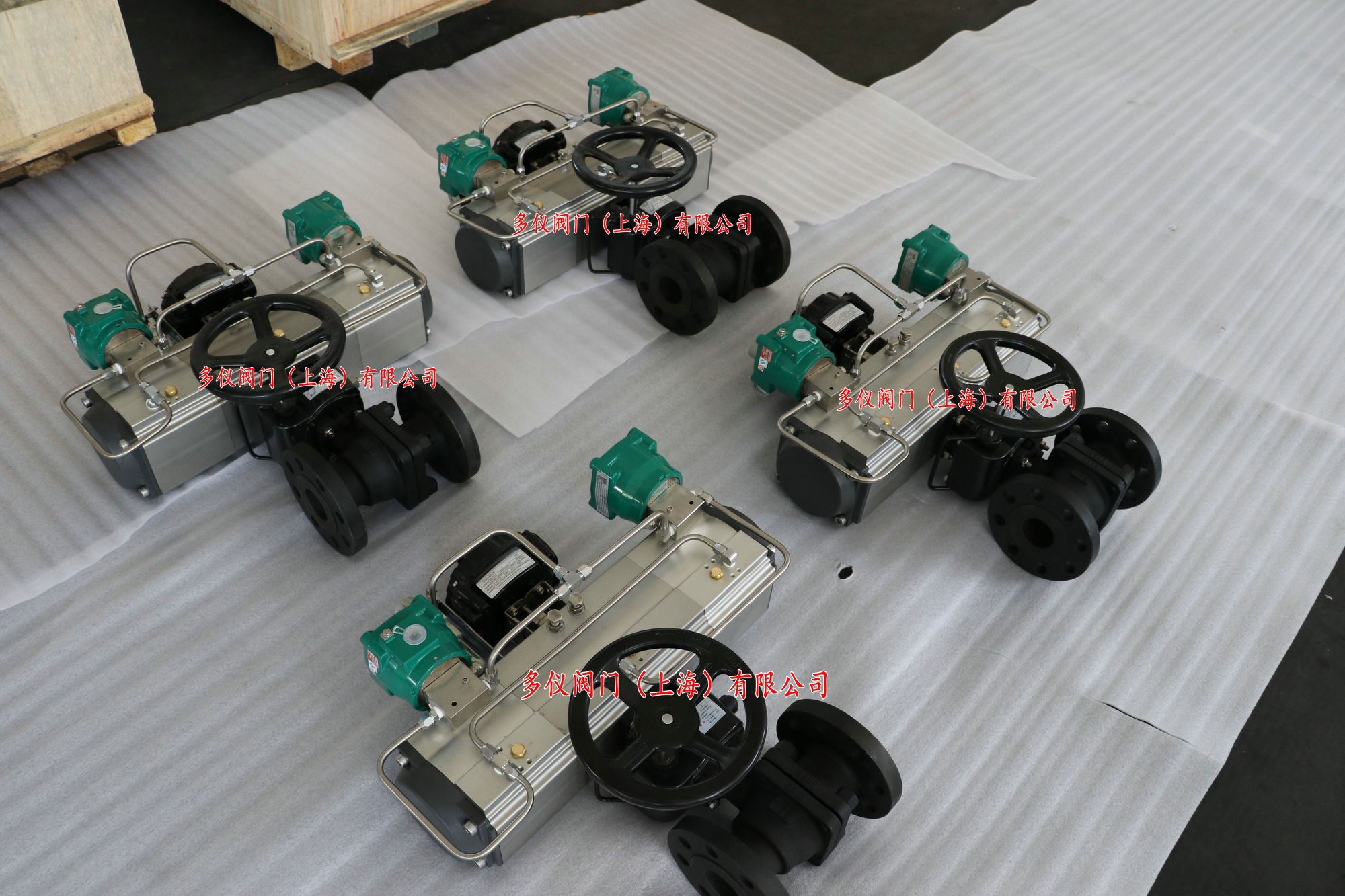 氣動(dòng)三段式球閥通常由三段式氣動(dòng)執(zhí)行器,二或三個(gè)電磁閥及相關(guān)附件組成,通過改變附加氣缸的活塞行程,執(zhí)行器和閥門轉(zhuǎn)角被停止在預(yù)先設(shè)定的角度(45°-90°),因此閥門流量得以調(diào)節(jié),這種裝置靠兩個(gè)電磁閥控制閥門的流量。此裝置在調(diào)節(jié)到需要的位置后,可以在長期的工作周期中保持持久不變的計(jì)量精度。